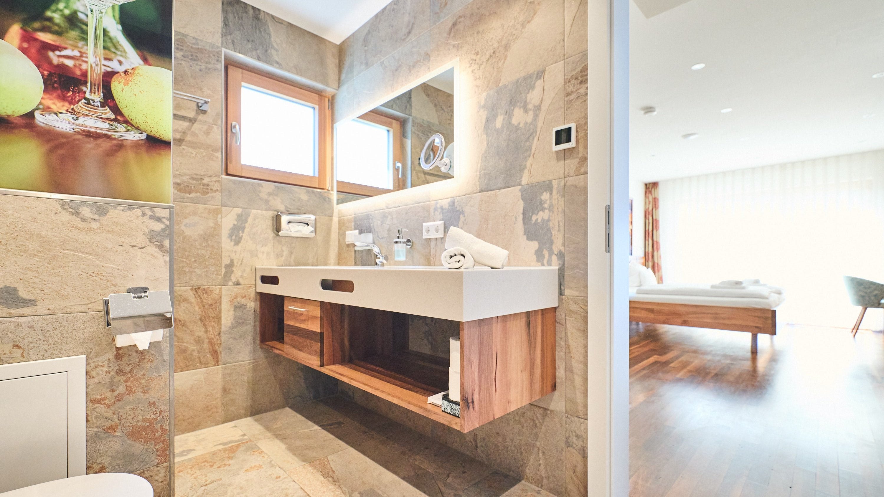 Our solid wood furniture completes the special living comfort of the double rooms.
