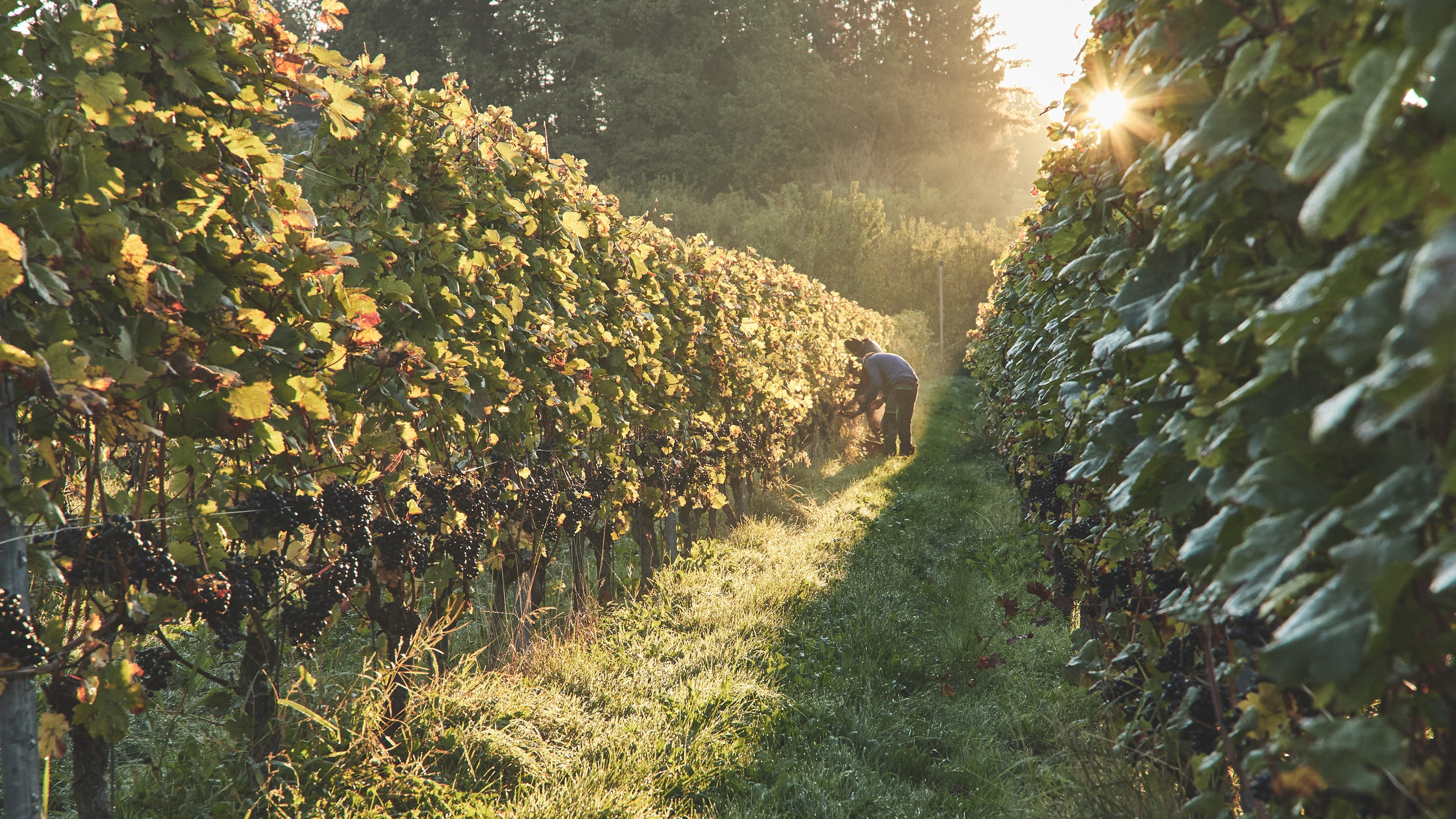 Grün für die Weißweine ist für uns die Farbe des Lebens, des Wachstums und der Natur, kaum gibt es einen schöneren Anblick, als einen Weinberg bei Sonnenaufgang.